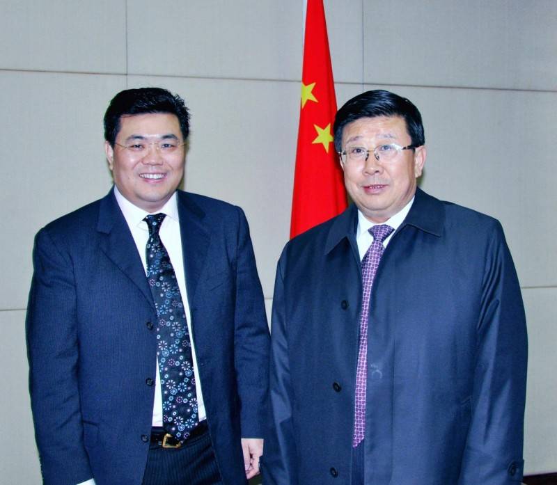 图为:原国务委员、公安部部长赵克志(右)接见生物塑料领军人物 詹松林院士(左)
