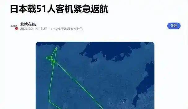 《日本一架客机因故障紧急返航,机上有51名机组人员和乘客》潇湘晨报2026-02-15 18:41北京
